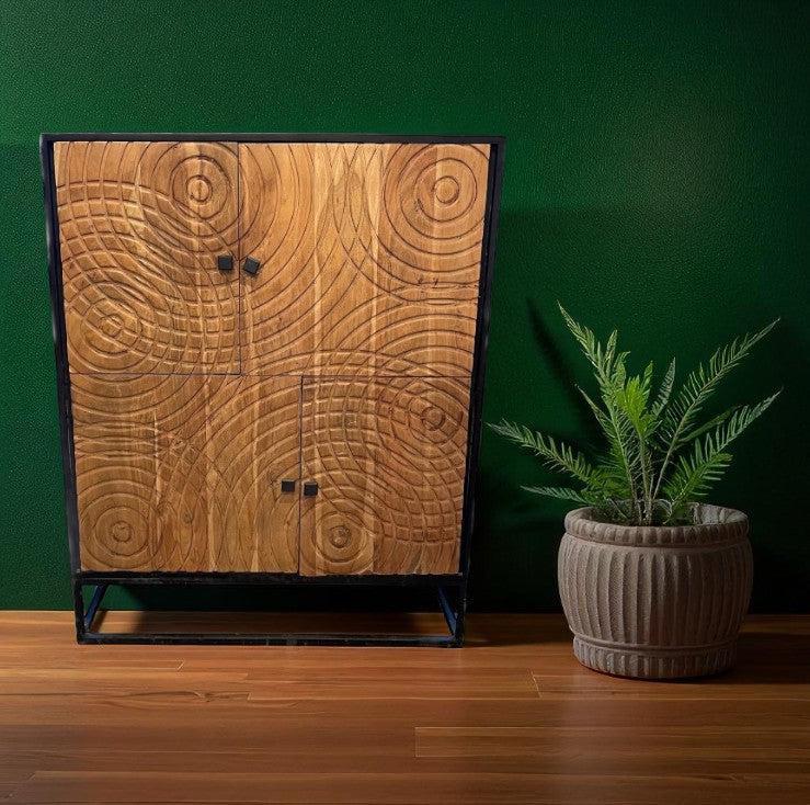 Matériaux: Structure en métal / Portes en bois de manguier massif sculpté