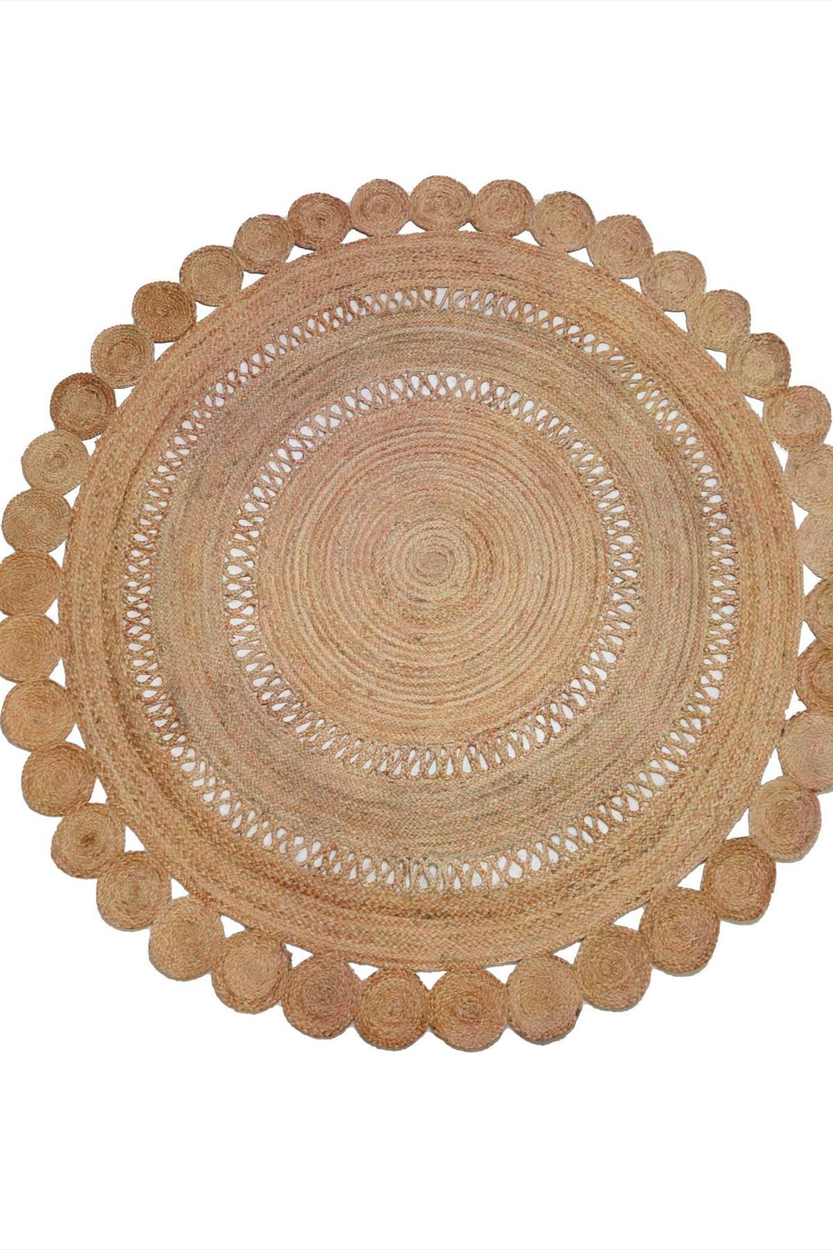 Tapis JUTE ROND Flower Naturel Ajouré D250cm